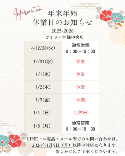 2026年1月5日(月)以降の対応になりますこと、あらかじめご了承くださいませ。