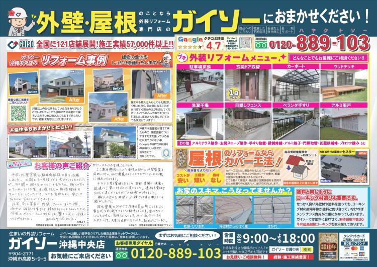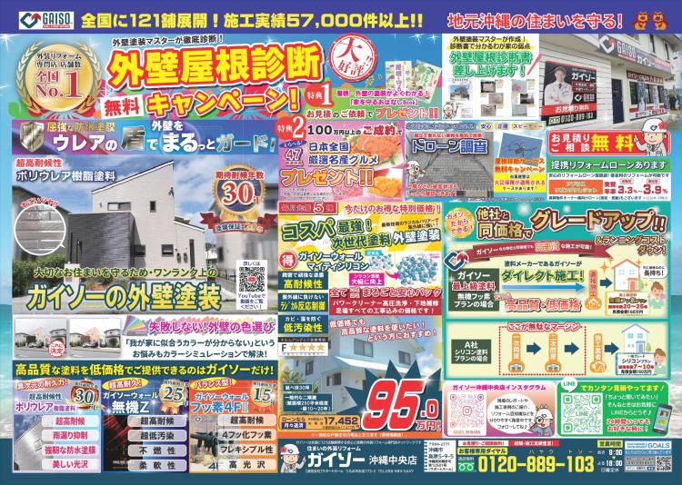 本日2月13日(金)、ガイソー沖縄中央店のチラシを新聞折込しています。