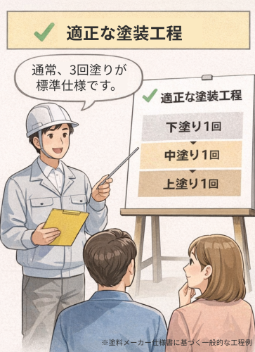 「下塗り+中塗り+上塗り」の3工程を基本としていることが一般的です。